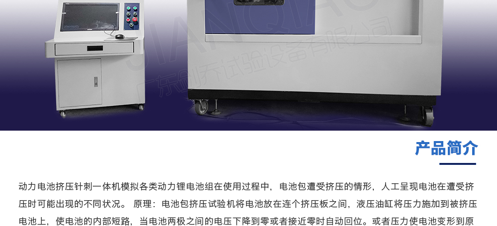 產(chǎn)品型號(hào):JQ-5067-20T(可定制) 品牌:劍 喬 用途:動(dòng)力電池?cái)D壓針刺一體機(jī)模擬各類動(dòng)力鋰電池組在使用過(guò)程中,電池包遭受擠壓的情形,人工呈現(xiàn)電池在遭受擠壓時(shí)可能出現(xiàn)的不同狀況。 原理:電池包擠壓試驗(yàn)機(jī)將電池放在連個(gè)擠壓咨詢熱線:13829135130