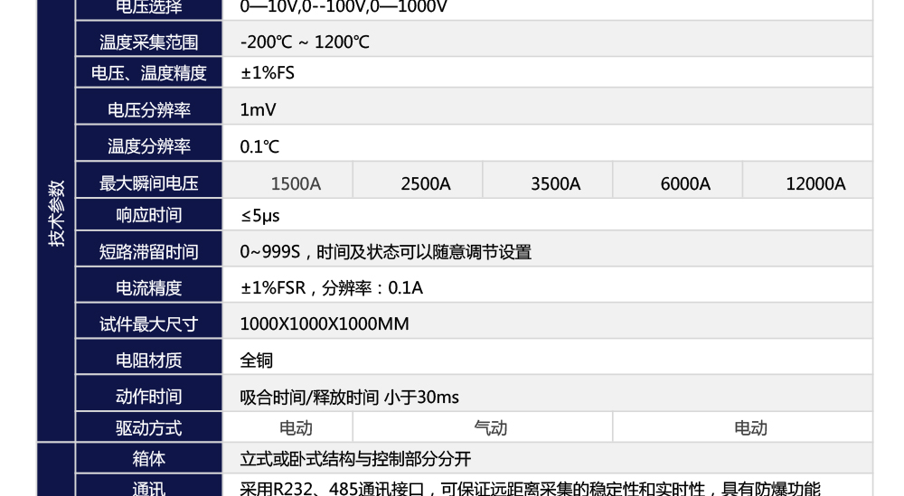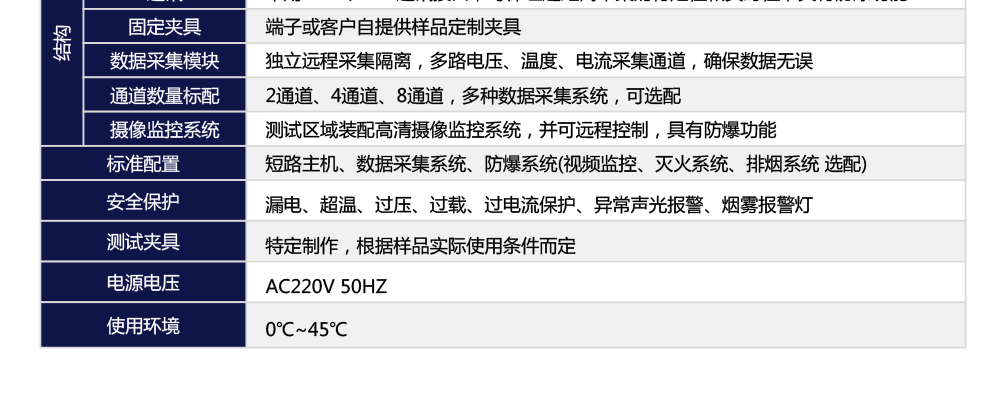 用途:大電流短路試驗裝置綜合多種電池短路試驗標準要求而設計,按標準要求短路裝置必須符合內阻范圍≤5mΩ,從而獲得試驗要求的最大短路電流;另外在短路裝置的線路設計上也須能夠承