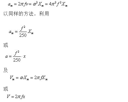因此在根據(jù)上式確定了加速度區(qū)域的激振力和已知試驗加速度幅值a后,用下式a=2πfv即可計算出此試驗負(fù)載下的加速度區(qū)和速度區(qū)的交越點,然后繼續(xù)用下式V=a/2πf計算出該交越點以下速度區(qū)內(nèi)頻率點各對應(yīng)的速度幅值的大小。當(dāng)計算值小于初步選定的振動臺的最大速度幅值時,試驗可行;選型得以確認(rèn),反之則應(yīng)重新選型。