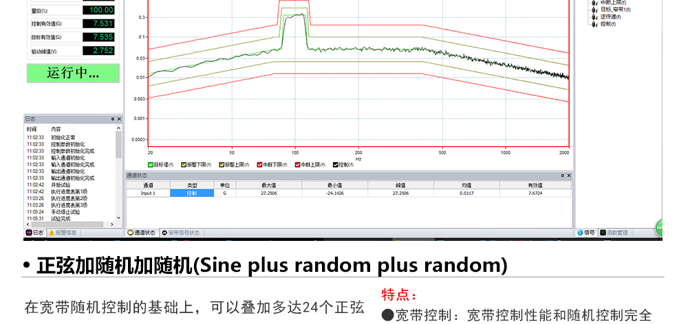 產(chǎn)品型號(hào): JQ-10002 品牌:劍 喬 用途:正弦試驗(yàn)可以控制振動(dòng)臺(tái)實(shí)現(xiàn)定頻(駐留)、掃頻等振動(dòng)試驗(yàn)。控制算法中采用了跟蹤濾波的幅值以及相位檢測(cè)算法,可以實(shí)現(xiàn)對(duì)控制信號(hào)的準(zhǔn)確反饋以及實(shí)時(shí)的閉環(huán)控制。咨詢(xún)熱線:13829135130