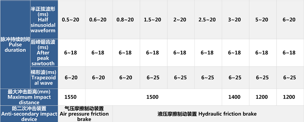 先進的儲能方式在設備結構限制的有限沖擊距離內,可獲得5倍于此距離自由跌落的沖擊能量